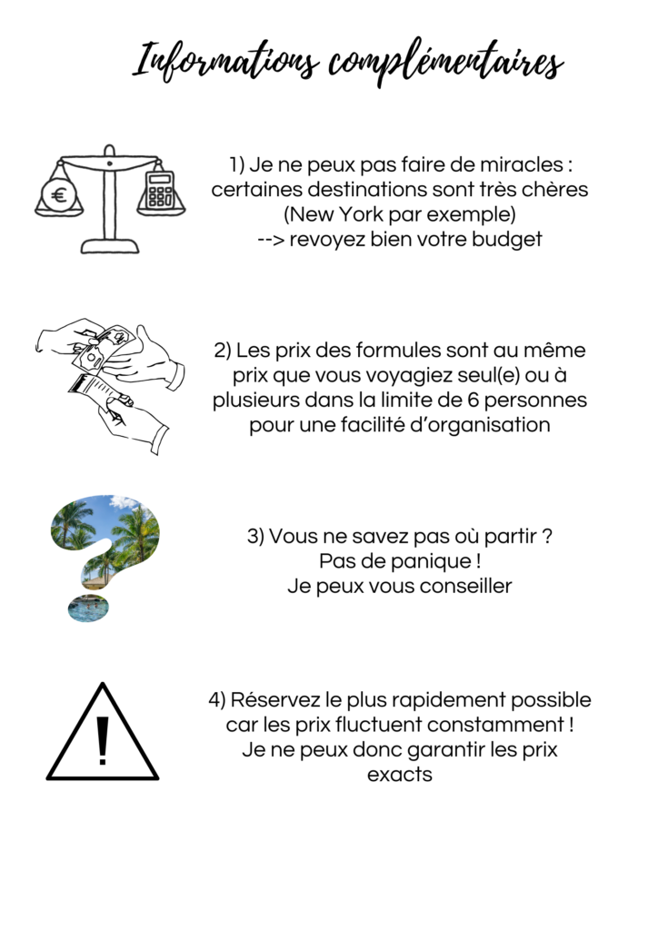 comprend : transport + hébergement. Je précise que les prix des hébergements, du transport ainsi que des activités ne peuvent être garantis. En effet, je n’ai aucun contrôle dessus. Le prix peut donc augmenter à tout moment.